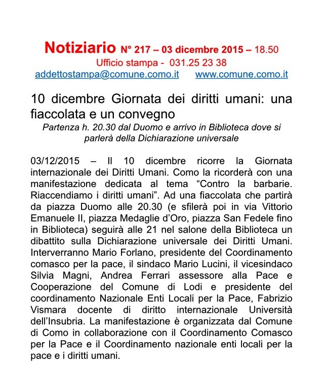 Sei in: Home / 10 dicembre Giornata dei diritti umani: una fiaccolata e un convegno