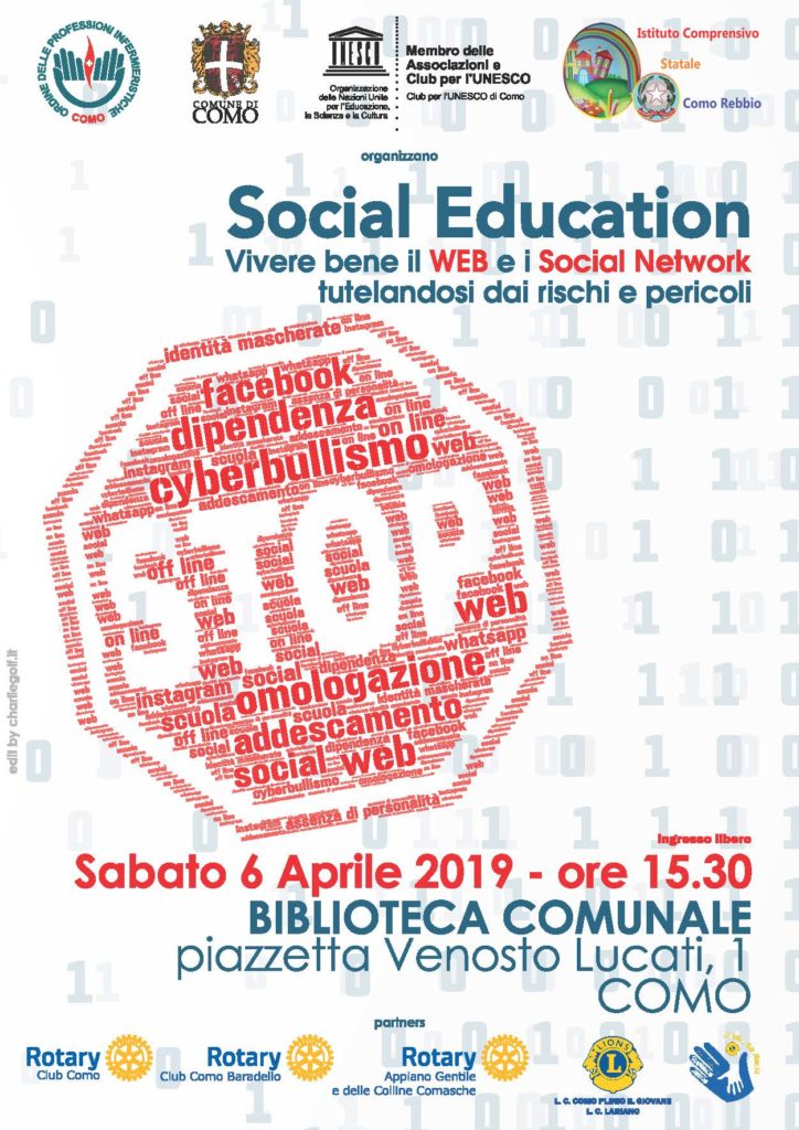 Si pubblica locandina e programma evento “Social Education – Vivere bene il web e i social network tutelandosi da rischi e pericoli” che si terrà il 6 aprile alle 15:30 presso la Biblioteca Comunale di Como.