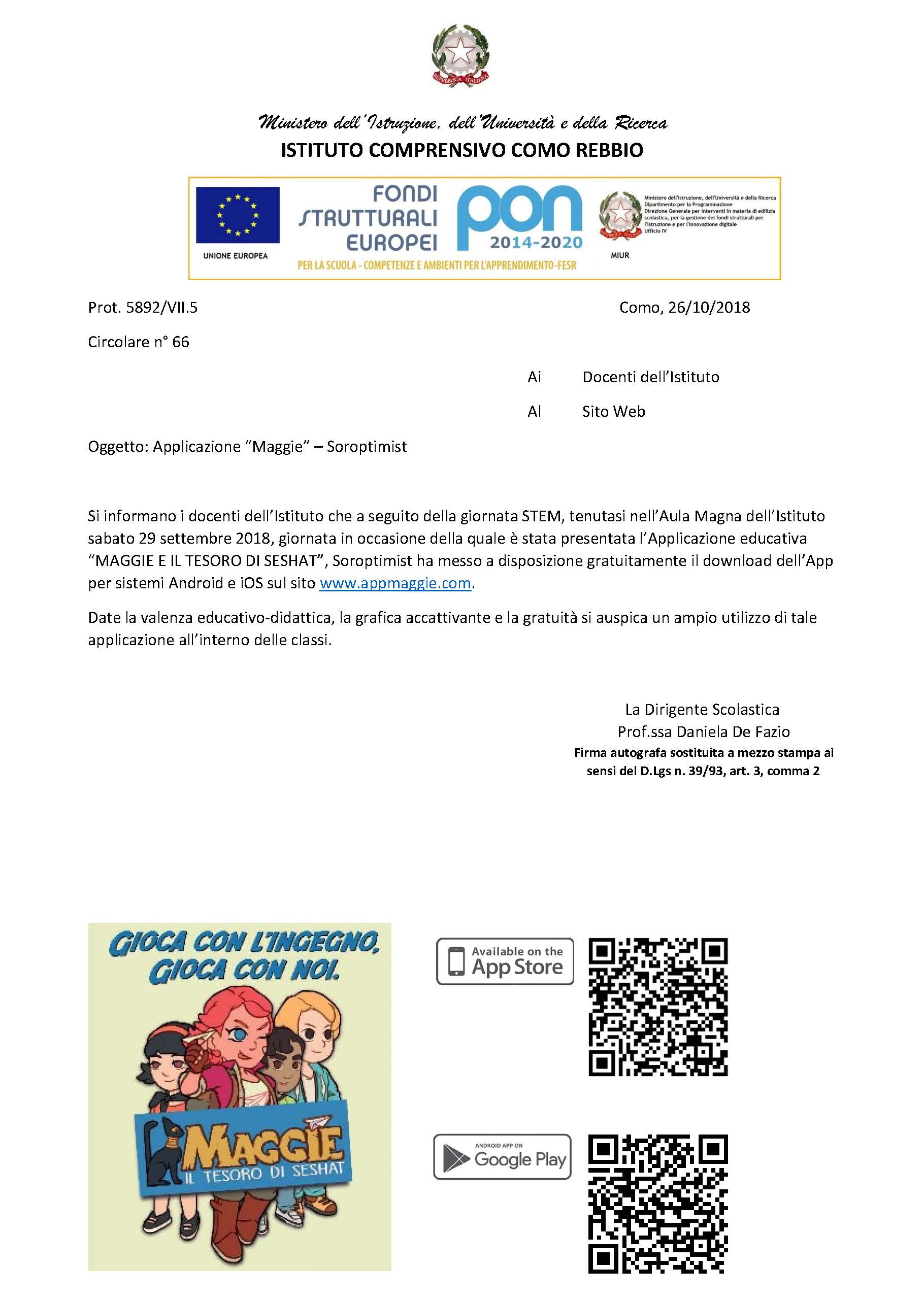 Si pubblica la circolare n. 66 relativa all’App Maggie per iOS e Android.