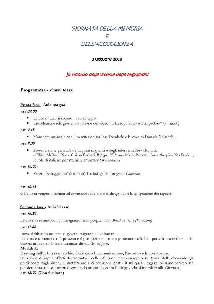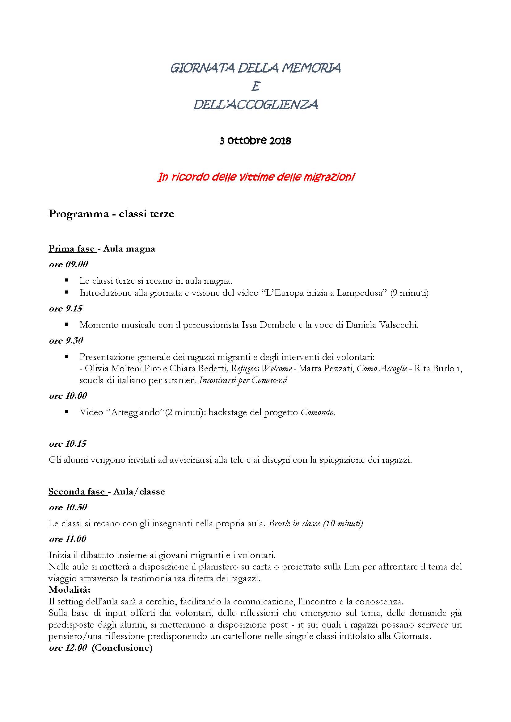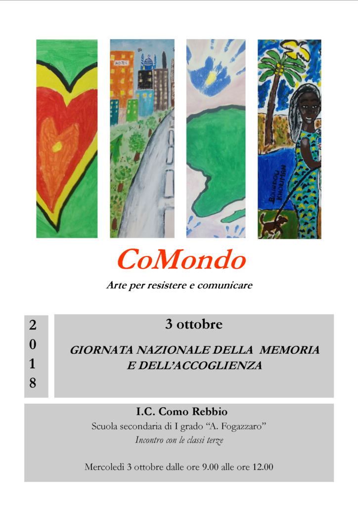 Giorno 3 ottobre presso l’Aula Magna dell’Istituto Comprensivo Como Rebbio si terrà la “Giornata Nazionale della Memoria e dell’Accoglienza“, incontro con le classi terze della Scuola Secondaria di Primo Grado “A. Fogazzaro”.