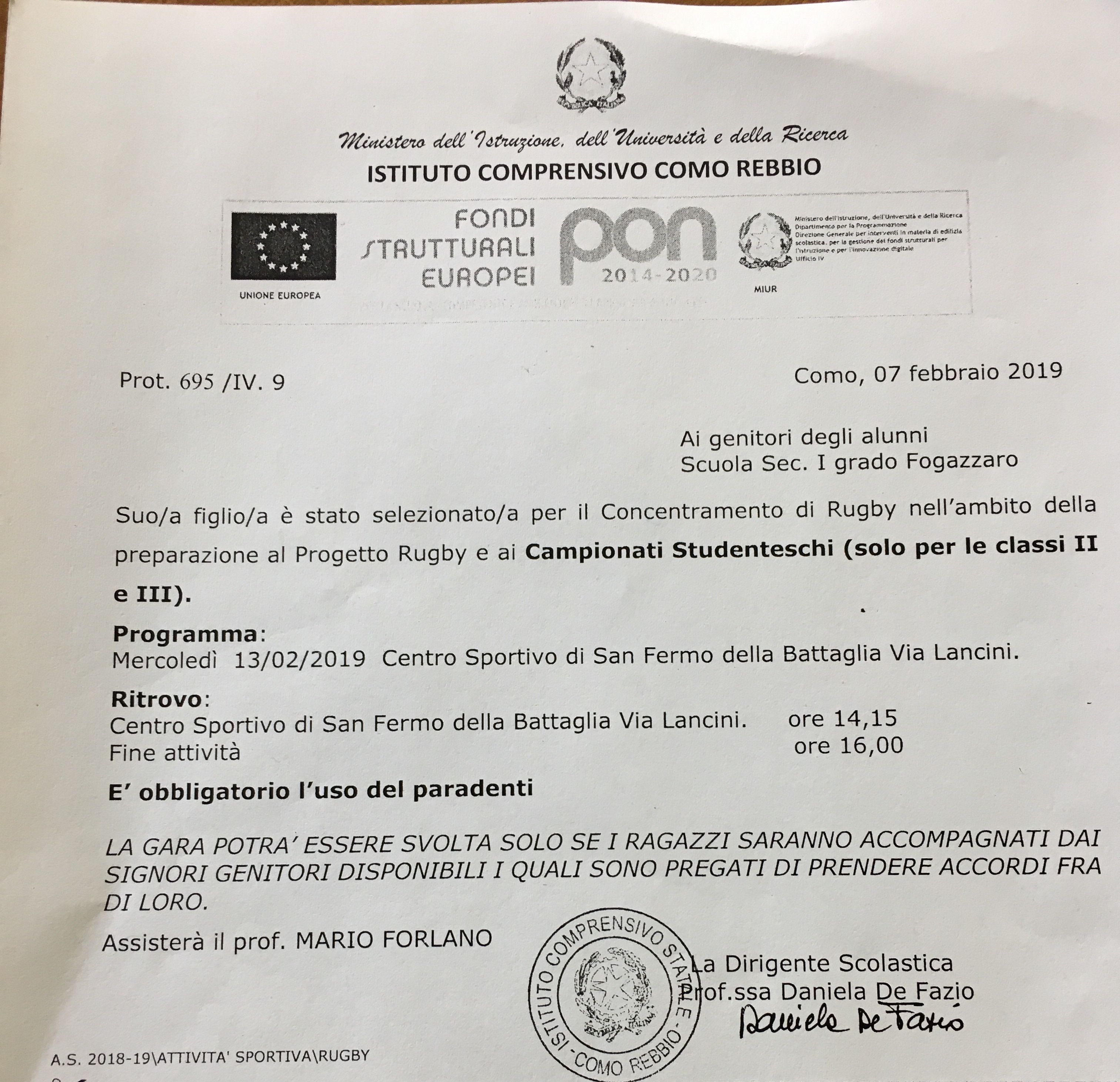 Concentramento Rugby – Preparazione Al Progetto e ai Campionati Studenteschi
