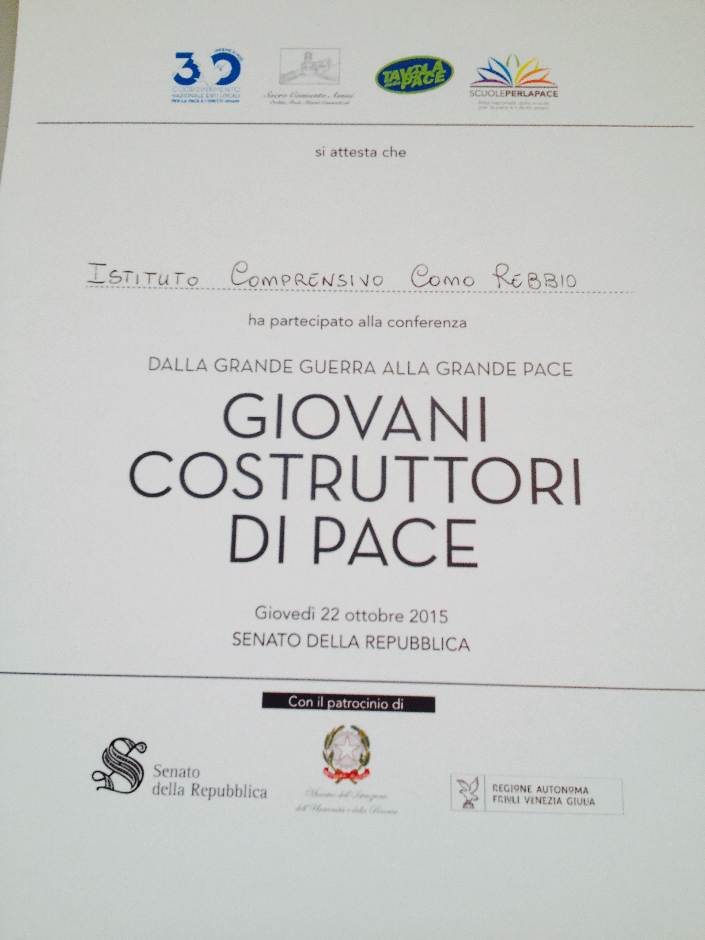 Sei in: Home / Conferenza “giovani costruttori di pace”, Senato della Repubblica