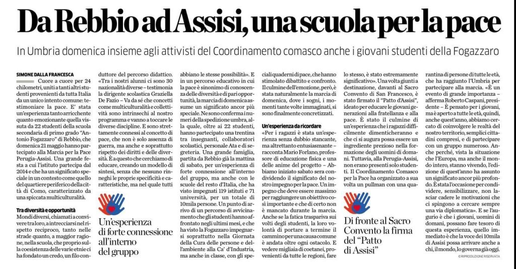 Da Rebbio ad Assisi… Una Scuola per la Pace