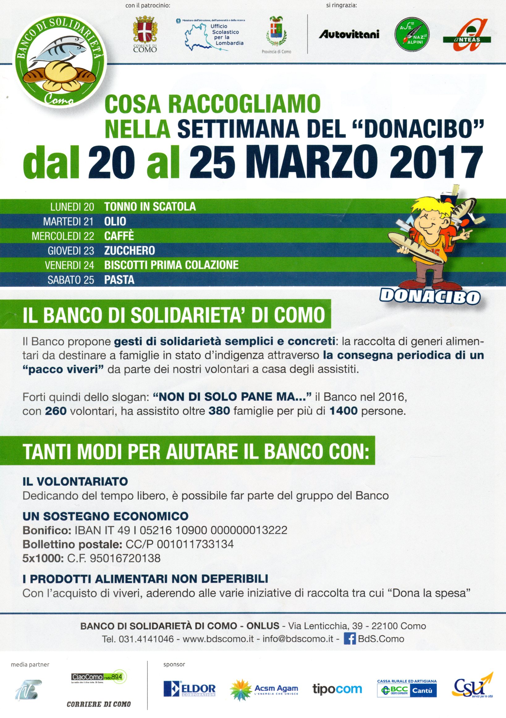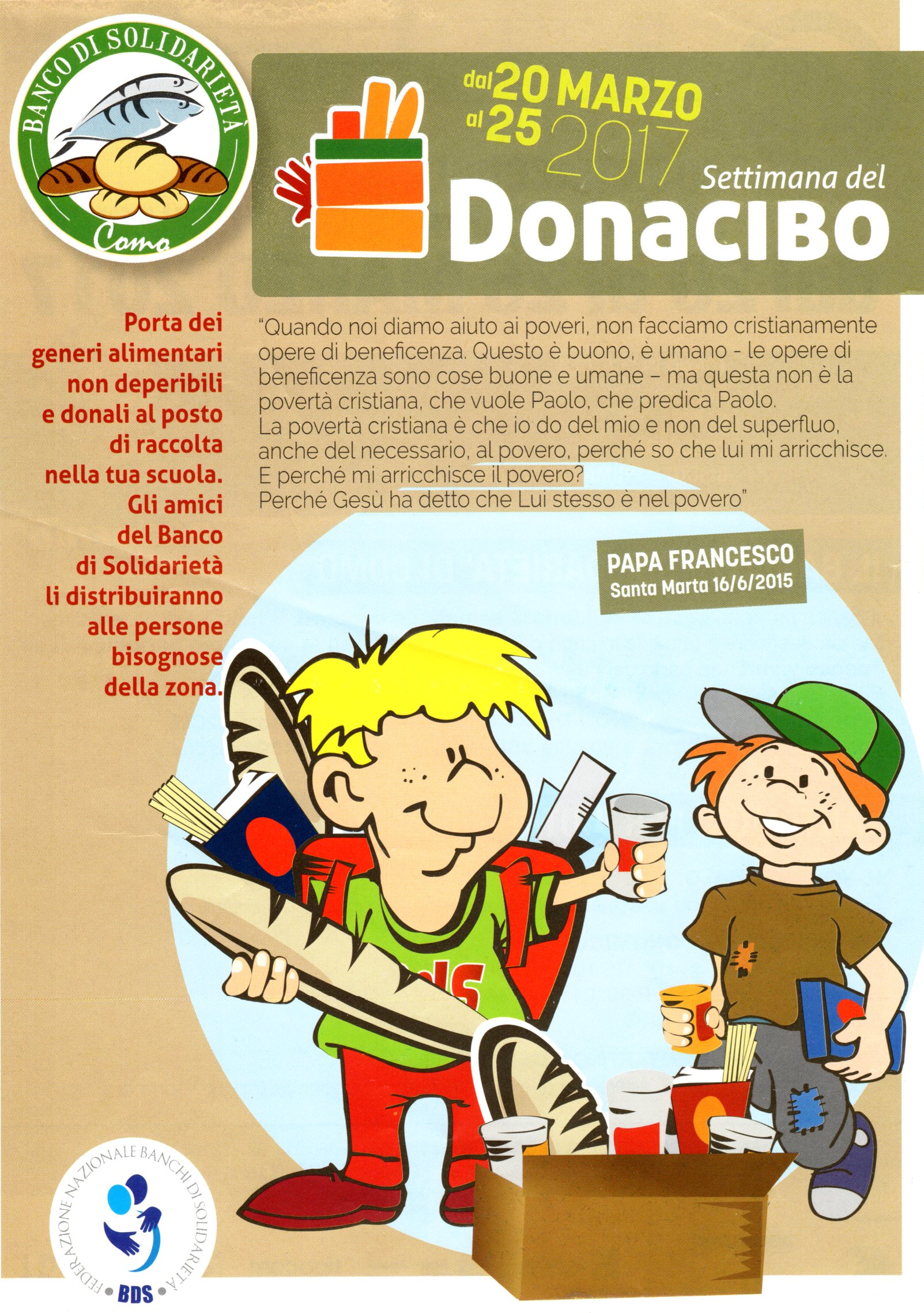Si pubblica la locandina relativa l’iniziativa “DONACIBO” per l’anno 2017. Si ricorda che la raccolta verrà effettuata nelle varie classi dal 20 al 25 marzo 2017.