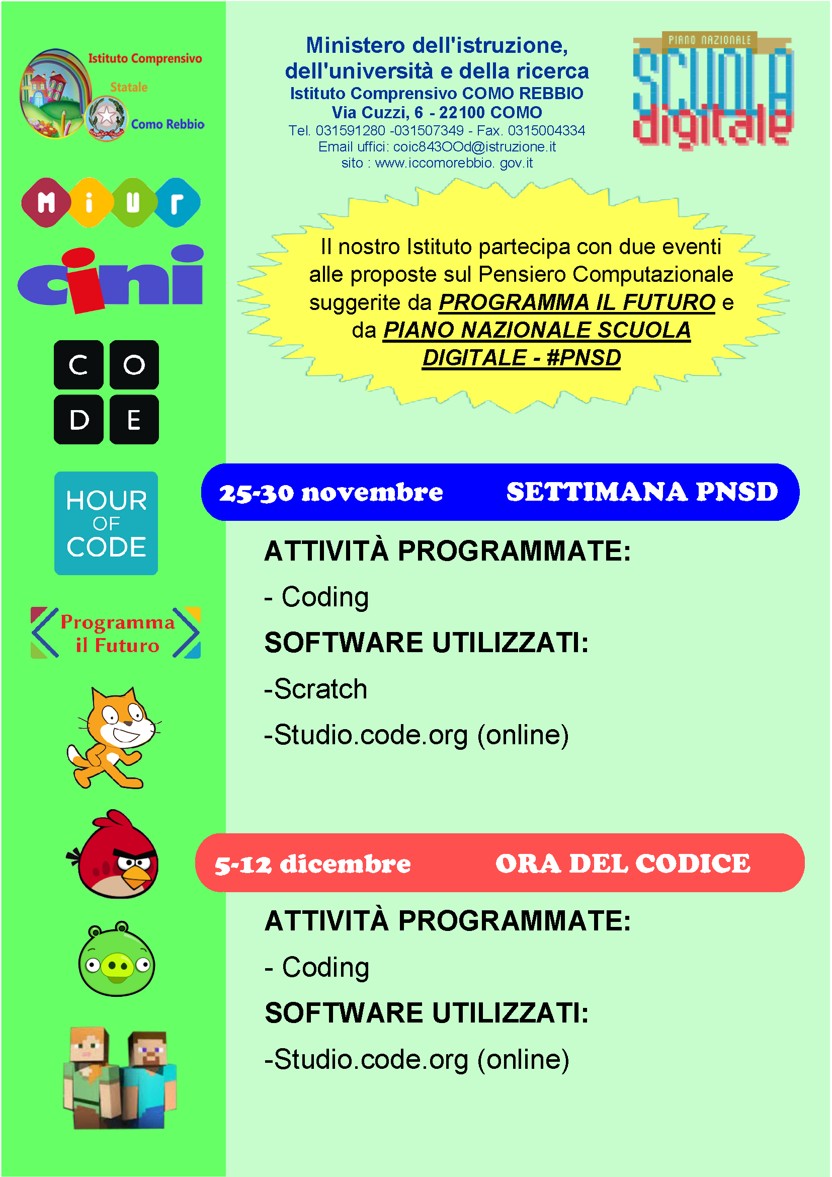 Si pubblica la programmazione dell’Istituto Comprensivo Como Rebbio riguardante il PNSD e Programma il Futuro