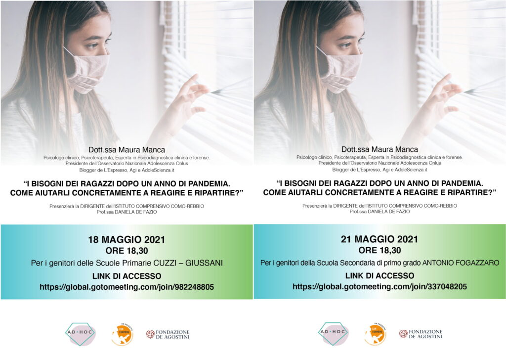 21 maggio per i genitori della Scuola Secondaria di I° Grado (Link – https://global.gotomeeting.com/join/337048205 )
