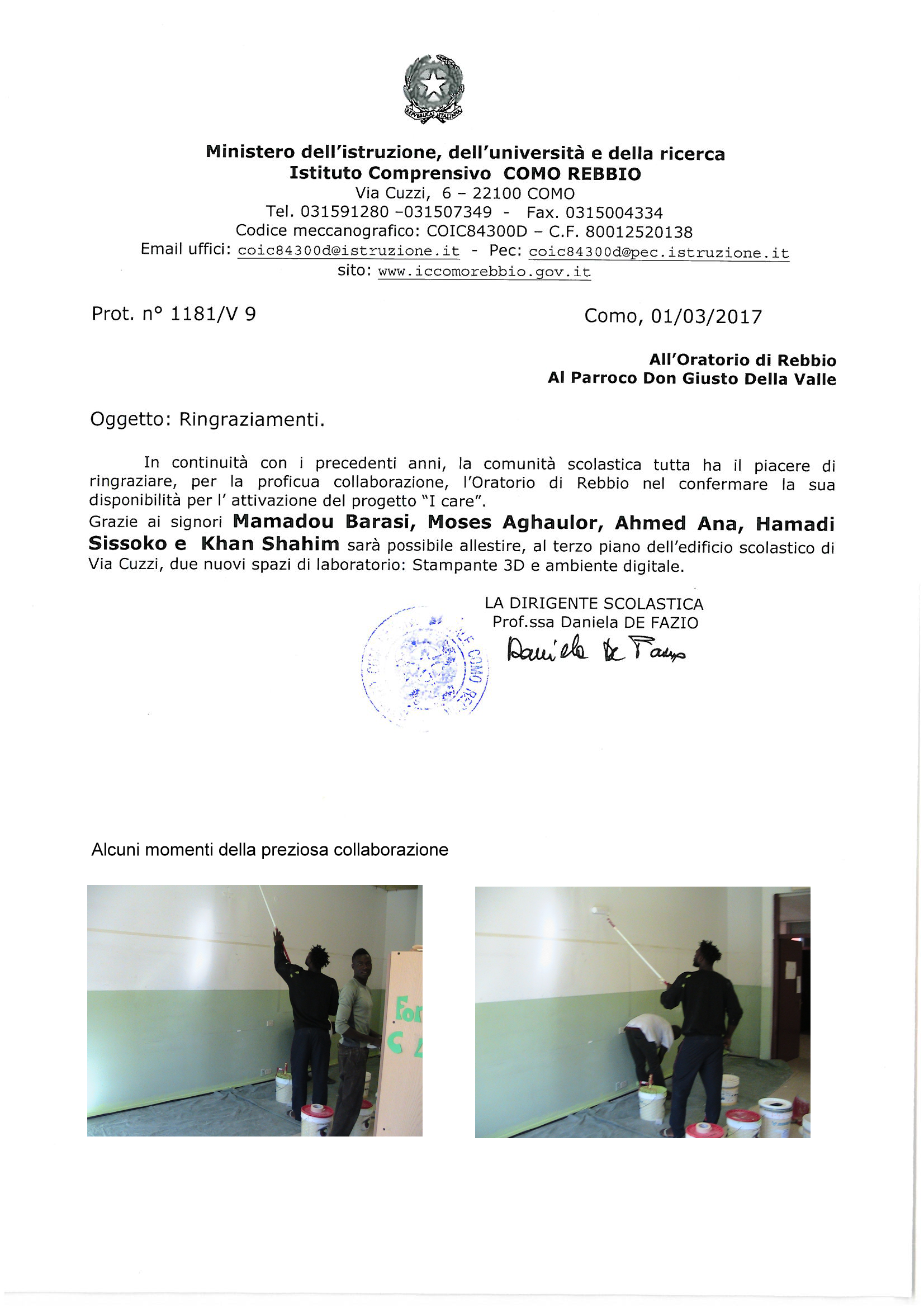 Ringraziamenti a Don Giusto e all’Oratorio di Rebbio
