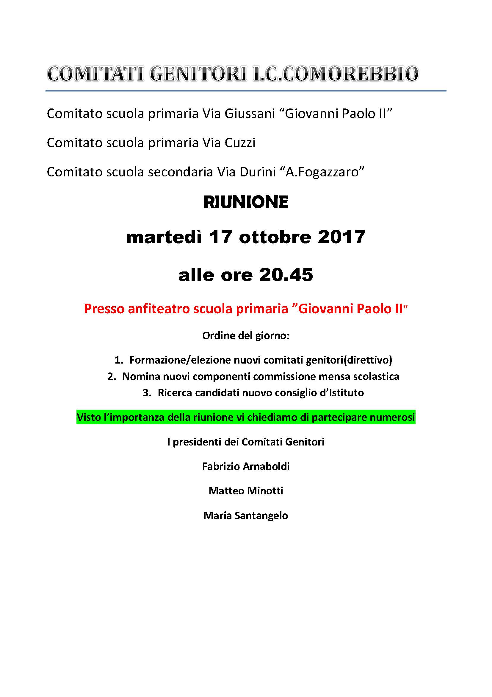 Si pubblica la comunicazione della Riunione dei Comitati Genitori I.C. Como Rebbio